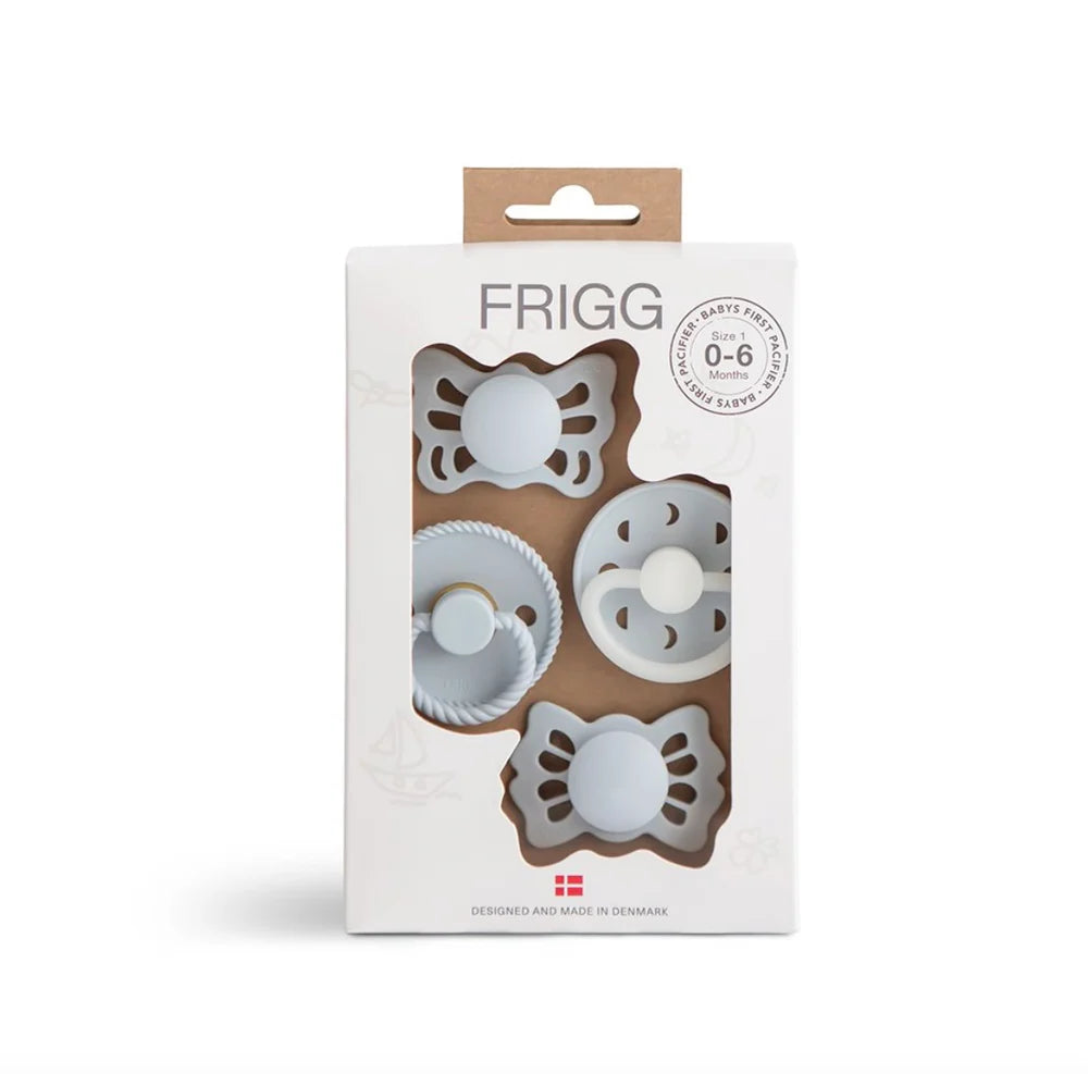It can be difficult for new parents to figure out which pacifier is the best one for their little one. FRIGG’s ‘Baby’s first pacifier’ set consisting of 4 different FRIGG pacifiers with different nipple materials and nipple shapes gives parents the opportunity to try out various pacifiers to find out which one their baby likes the most