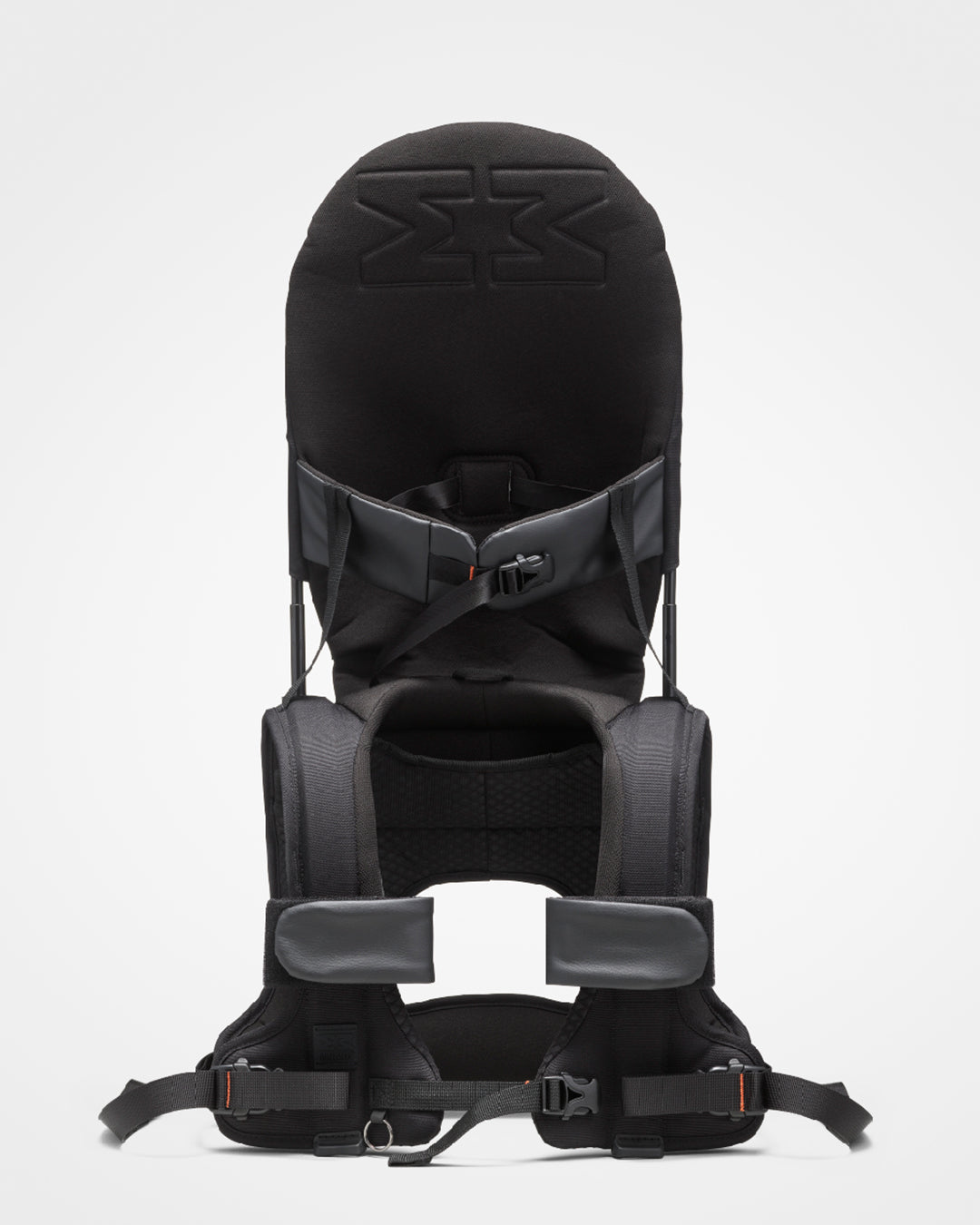 While discovering the world, your child sits safely on your shoulders secured by a waist belt and leg straps. A harness with shoulder straps is included to give extra upper body support for the smallest kids (6-10 months). An extendable padded seat provides maximum comfort for the child. The supportive backrest is designed to help the child sit up straight while sitting in the carrier on your shoulders.
