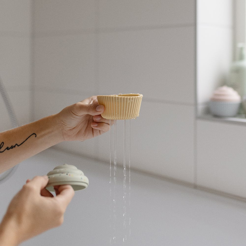The cute cupcakes in the sweetest color shades almost make you wish you could eat them. They are made of the soft and healthy material food-grade silicone and feature small draining holes on the botton for both easy cleaning and for a fun playtime in the bath.