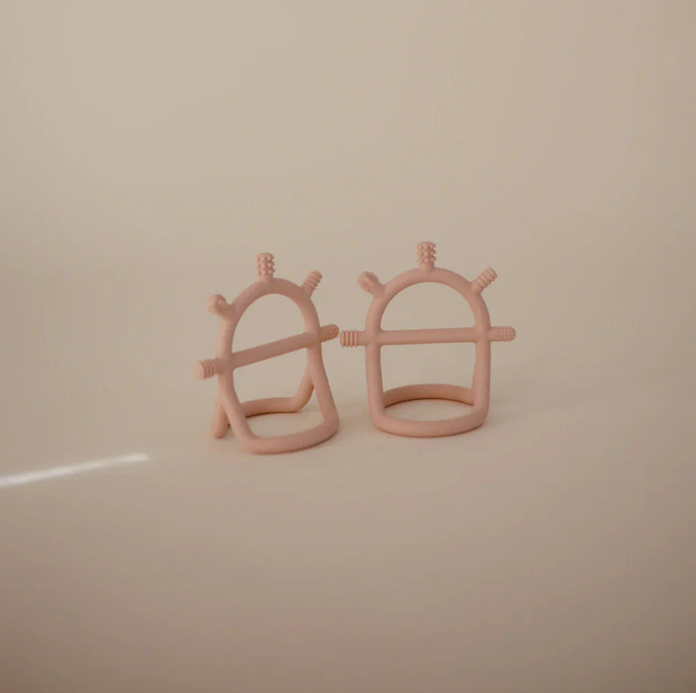 The No-Drop Sensory Teether is easy to grasp by tiny hands thanks to the interior handle. The textured silicone surface massages and soothes irritated gums when teeth are starting to come out.