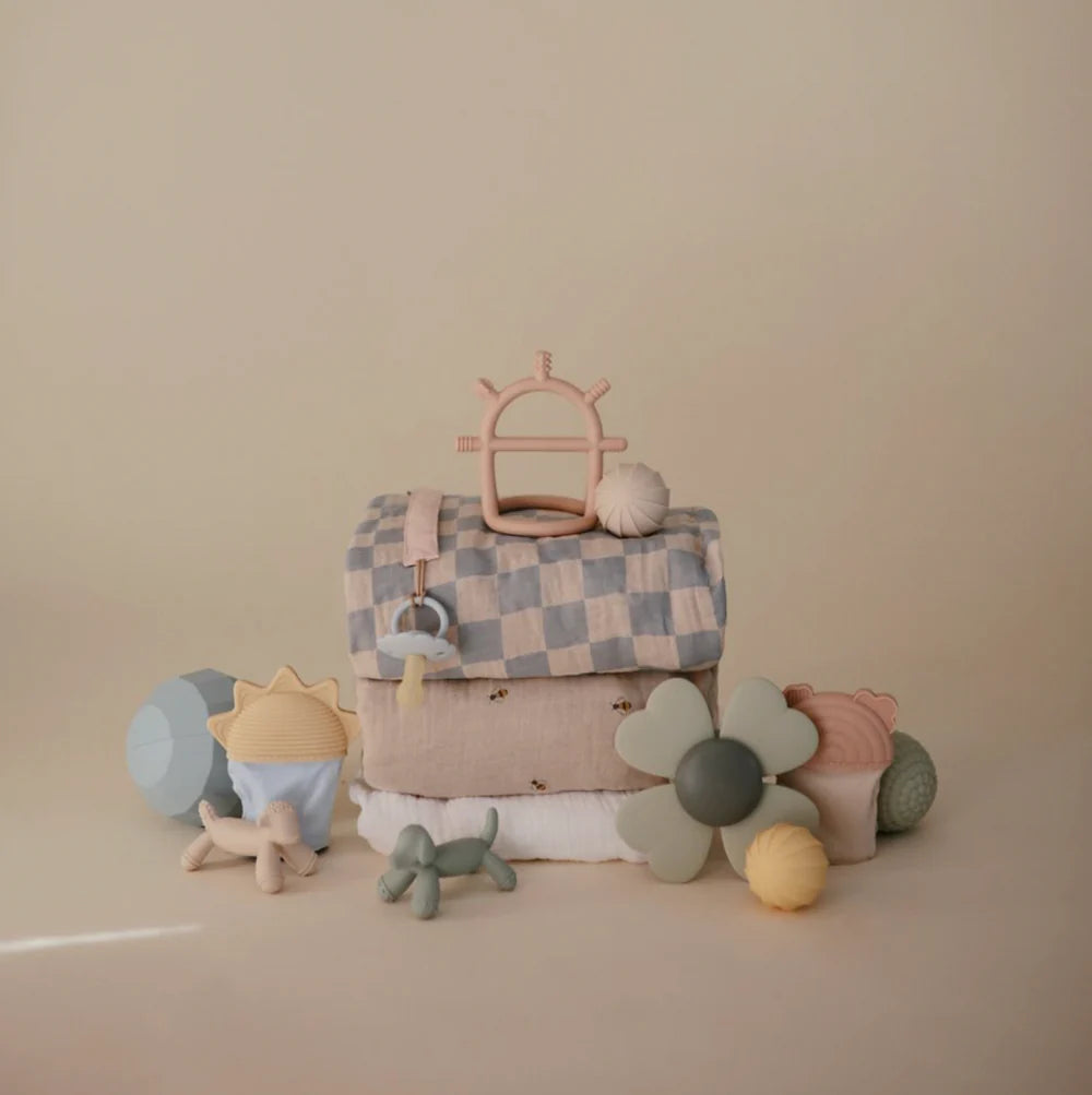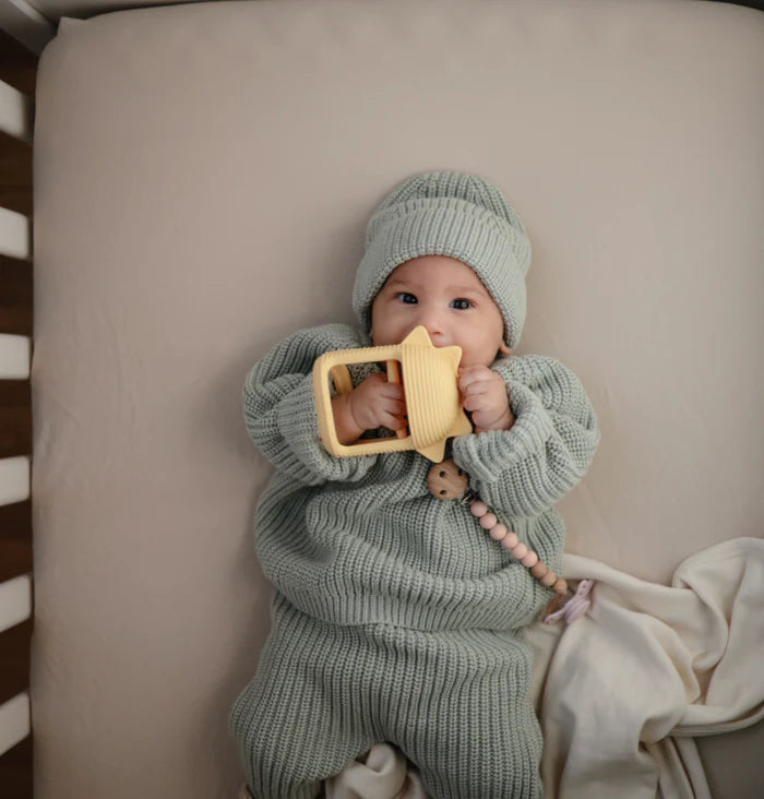 Our no-drop sensory teether will engage your little one’s senses as they discover self-soothing techniques. Made from 100% non-toxic, food grade silicone, this teether is safe for chewing as babies seek relief for sore gums.
